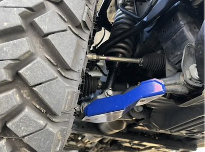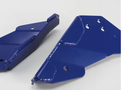 Lower arm guard made of 4.5mm thick high-strength steel plate. The practical structure, such as the double structure of the section where stress is applied, maximizes the vehicle body protection function. The guard body, which is completely bolt-on, is powder coated with metallic blue to ensure high custom appeal and corrosion resistance.