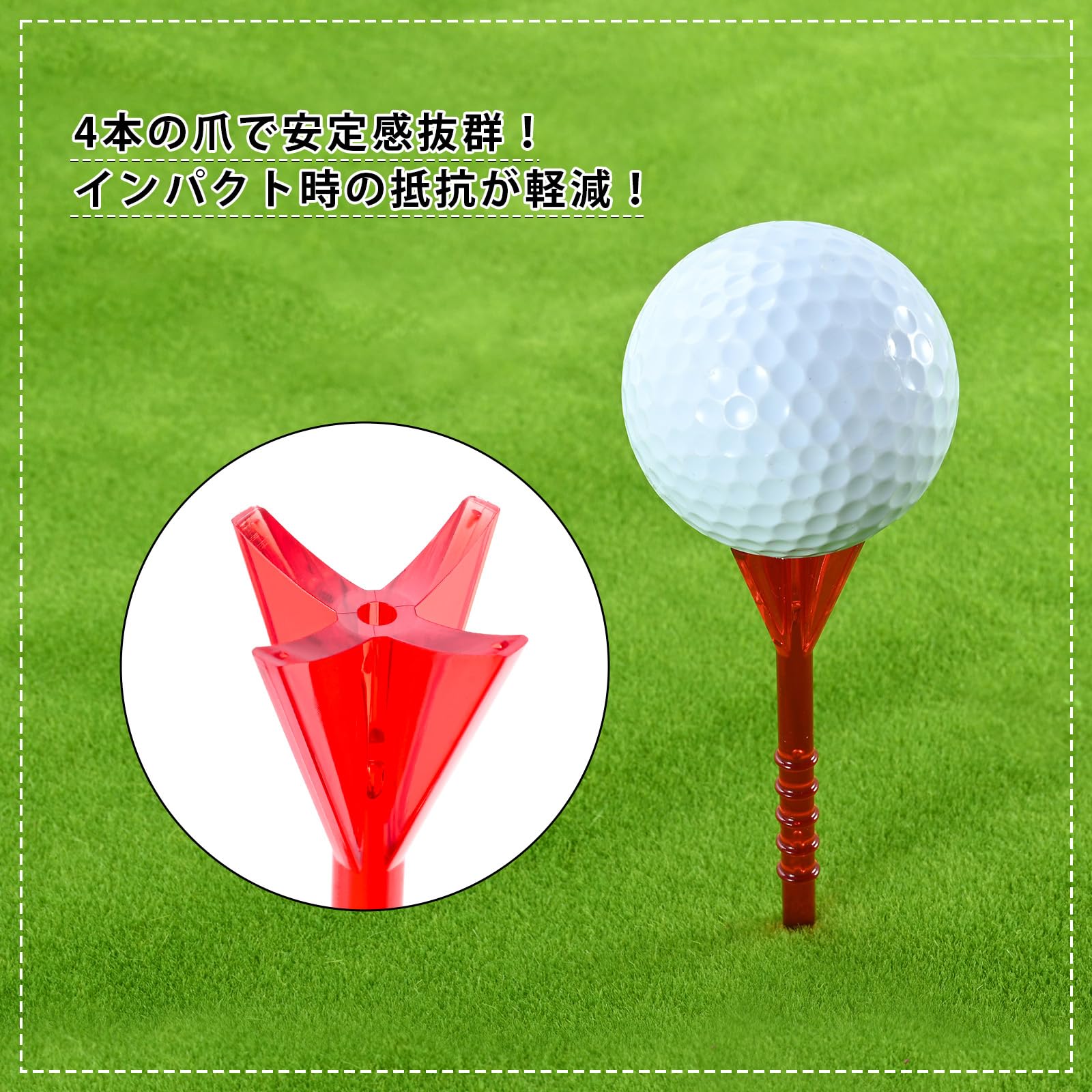 商品情報商品の説明主な仕様 【壊れにくい】ブラスチック製のゴルフティーは、優れた耐久性や耐摩耗性があり、折れにくく、長持ちするように設計されています。【4爪のデザイン】4爪ヘッドでボールの抵抗、接触、摩擦が軽減され、ボールを乗せやすく、振り抜きやすく、飛距離アップに繋げます。【高さ調節可能】数字の目盛りにガイドされて高さを調節でき、サーブのミスを減らし、正確なサーブの高さをします。【ランダムカラー】色の種類も豊富なので、飛んでいった時にも見つけやすいというメリットを持っています。鮮やかな色がゴルフ活動を楽しくします。【サイズ】長さ:約83mm、合計40本入り。