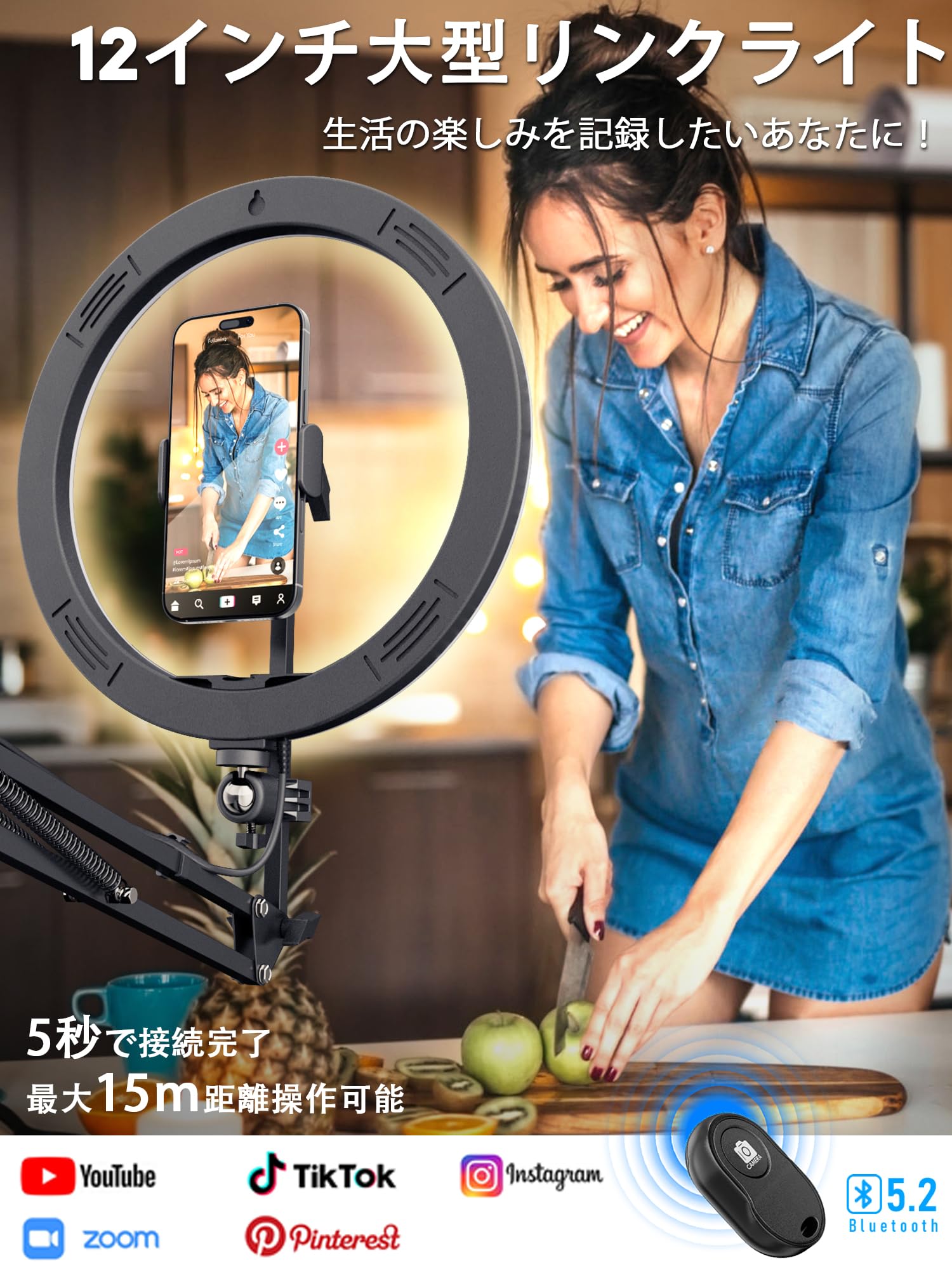 商品情報商品の説明主な仕様 【影のない俯瞰撮影に最適・角度と高度調整可能】撮影用ライトは影のない俯瞰撮影を目的に設計されています。 リングライトを撮影対象の真上または少し斜めに配置することで、均一な明るさを確保し、影を最小限に抑えます。 伸縮式アームとして、照明の方向、撮影角度や位置を頻繁に調整する必要がある方に最適です。 必要に応じて角度と高さを調整でき、配信、作業、撮影やメイクなどの用途に合わせて最適な位置にリングライトアームを設置できます。【30段階調光&3色モード調色】調光可能な12インチリングライトにより、完璧なライティングを実現するためのリングライトアームスタンドです。 30段階の調光と3色モードが搭載されており、どんな撮影シーンでも理想的な照明を提供します。 1%-100%調光可能で、撮影時にライトの明るさを簡単に制御できます。 電球色、自然色、昼光色(3000K-6000Kの色温度)を雰囲気を変えたり、より柔らかく自然な光を届け、ビデオ会議、ライブ配信、スマホ自撮り、料理撮影、YouTubeビデオ撮影、TikTok撮影など幅広い場面でご利用いただけます。【USB給電・リモコン撮影で便利操作】USB給電デザインのM07照明ライトは、アダプターから給電またはモバイル電源など簡単に給電可能、より便利性と安定性を与えます。 特別な設定や複雑な手順は不要です。誰でも簡単に使用できます。 リモコンが付いており、ほとんどスマホとうまくペアリングし、スマホに触れずに撮影できるため、手ブレを防ぎ、より高解像度の写真を得ることもできます。 特に一人で撮影する際や、特定の角度からの撮影を確保したい場合に役立ちます。(ご注意:USB給電で、最高の明るさを得るためには5V/2A以上(10W以上)のアダプターを使用してください。アダプターが付属していません)。【スマホ撮影便利グッズとして、様々なシーンで活躍】1.メイクアップ: 女優ライトとして、自宅でのメイクやプロのメイクアップアーティストに最適でどんな環境でも柔らかい自然光を提供します。 2.Zoom、ウェブ会議、YouTube、Tiktokやライブ配信ライト照明として、 明るく均一な照明で、視聴者に良い印象を与えます。3.写真撮影や動画撮影:SNS撮影、料理制作、アート制作、スケッチ記録、DIY、精密仕事、商品撮影、ポートレートや在宅運動など、真上からの俯瞰撮影が必要なシーンで活躍します。【スマホ対応機種】スマホホルダーの対応サイズは約4.7インチ-6.8インチ(約6-9cm)で、IPhone 16シリーズ/15シリーズ/14シリーズ/13シリーズ/12シリーズ/11シリーズ/Xシリーズ/SEシリーズ/8シリーズ,Samsung Galaxy S25/ S24/ S23/ S22シリーズ,Google Pixelシリーズ/Nexusシリーズ,Huawei,Xiaomiなど多機種を対応。【品質】CACENCANは12ヶ月の商品品質をしています。初期不良、期限以内に故障が起こったの場合には、返品・交換のサービスを提供します。商品に関するどんな問題(特に電源、接続、互換性などの問題)があっても、お気軽くEメールで弊社のお客様サポートにご連絡お願いします。
