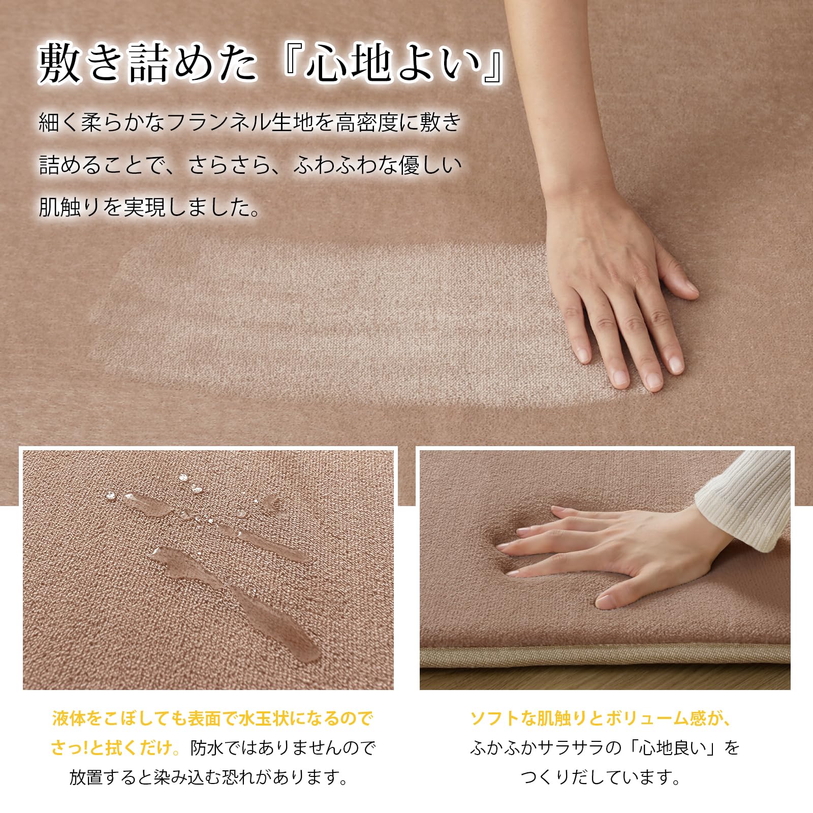 商品情報商品の説明主な仕様 【低反発カーペット】厚さは約25mm低反発ラグマットの踏み心地がすごくふんわりして、底付き感を感じずゆったりリラックスします。体圧をバランス分散し、長時間座っていても疲れにくい。ウレタンクッションで防音効果も抜群で、物の落下や足音など床から階下へ伝わる騒音を軽減することができ、防音ラグとして、心地よい暮らしをサポートします!【オールシーズンお楽しみに】絨毯表面は細く柔らかなフランネル生地を高密度に敷き詰めることで、さらさら、ふわふわして優しい肌触りを実現します。極細マイクロファイバーは軽くて、保温性や速乾性も優れているので、夏はサラッと冬はあたたかい!床暖房・ホットカーペットも対応し、底冷えする季節も足元がぽかぽか暖かいです。【滑り止め・抗菌・防ダニ】衛生的にご使用いただけるよう抗菌・防臭・防ダニ加工を加えます。カーペットの裏面にはゴム製の滑り止め加工があり、フローリングに敷いても滑りにくく、安全のノンホルム仕様なのでお年寄りやお子様やペットがいるご家庭でも安心です。【お手入れ楽に】毛足の長さは約4mm、短毛ラグなので、ゴミやほこりが絡まりにくい、掃除機で簡単に掃除可能です。うっかり飲み物をこぼしても、すぐに拭き取れば大丈夫です。【ラグ仕様】表地:ポリエステル100% 中材:ウレタンフォーム 裏地:ポリエステル100% 不織布 。サイズ:200x295cm 約4.5畳。毛足約4mm、ノンスリップ不織布約1mm、ウレタン 約20mm、全厚さ約25mmです。