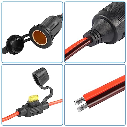 【送料無料】CERRXIAN 12V/24V固定スレッドシガーライターソケット延長ケーブル、20 A 13 AWG防水シガレット点火器メスソケット交換ケーブル(0.3M)