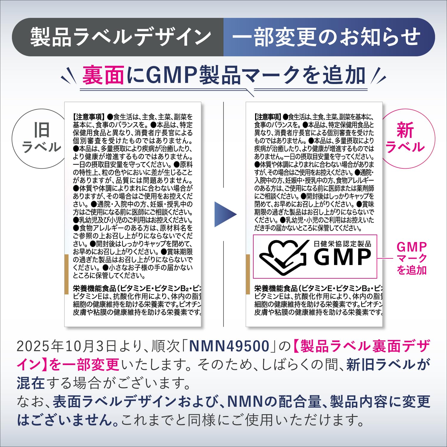 商品情報商品の説明主な仕様 【NMN49500】ワンランク上を求めるあなたへ贈るTHE PREMIUM NMNサプリメント。1本にNMNを49,500mg配合。「たった1粒」でNMNの1日の目安量を満たすことができます。さらに、NMNの配合量を製造毎に第三者機関で分析を行い、確かな品質をご提供。1粒あたり330mg以上のNMNを配合しております。【高純度NMN100%】NMNは、1.全ロット純度分析、2.国内製造、3.安全性試験の実施、4.植物由来のNMN、5.エビデンスのあるβ型NMNの5つ基準を満たす高品質の原料だけを採用しています。また、皆様のお手元に届く製品は、全て厳格な品質が求められる国内のGMP認定工場にて製造しています。【薬剤師監修】最新の研究データをもとに薬剤師と共同開発。原材料、製造工程、分析結果のすべてにおいて厳格な基準をクリアした日本製NMNサプリメントです。【充実のサポート成分】NMNとの組み合わせを考えて、コエンザイムQ10や乳酸菌エキス、GABA、レスベラトロール、マルチビタミンなどのサポート成分をバランスよく配合しました。【たっぷりの150日分】1日1粒で150日分。1日1粒を目安に水またはぬるま湯でお召し上がりください。続けやすさにもこだわり、飲みやすいカプセル形状になっています。着色料不使用で、毎日の健康維持にお役立てください。カプセル内の粉末の色はビタミン由来によるものです。