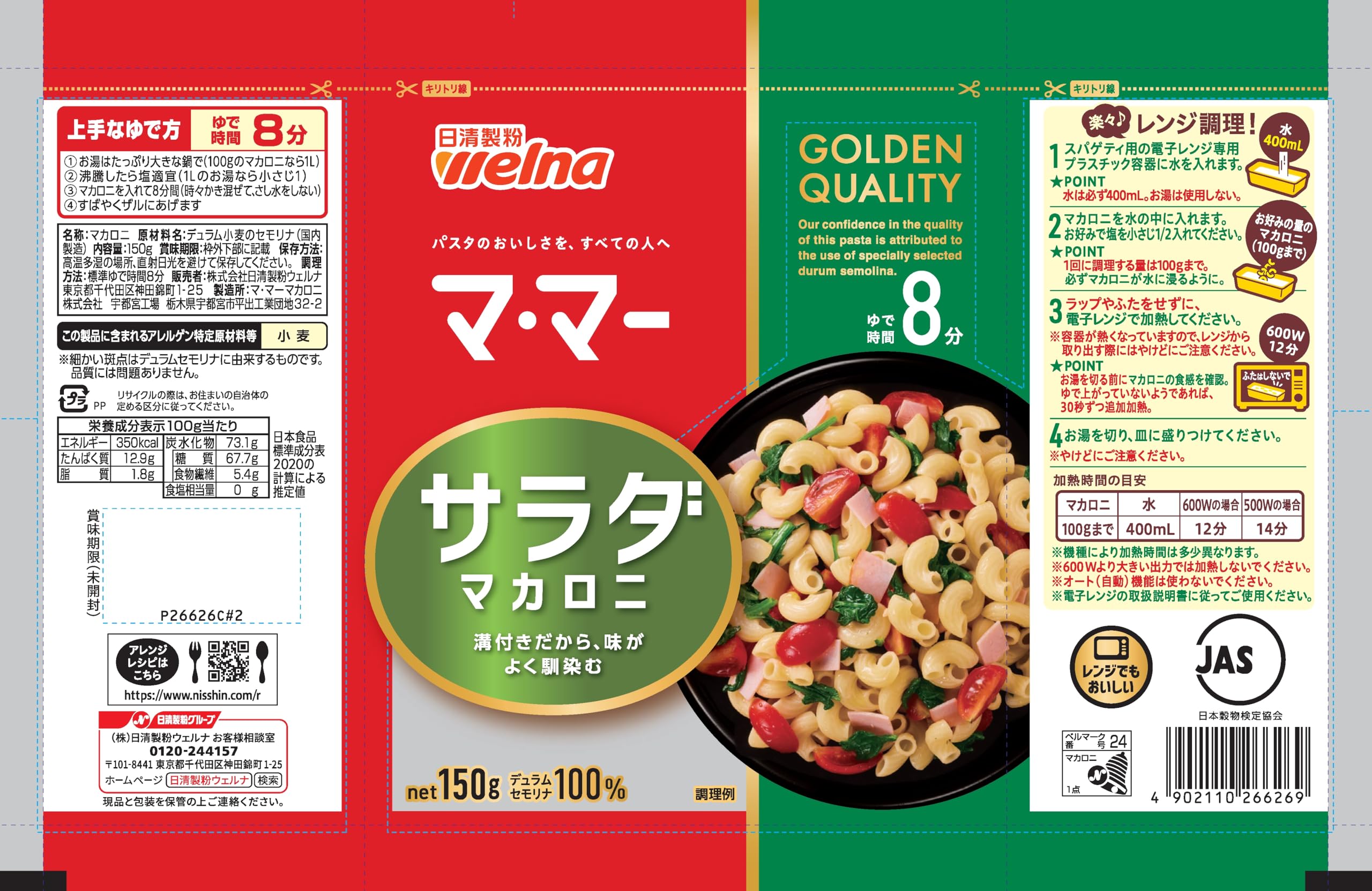 商品情報商品の説明商品紹介 冷やしてもプリッとした食感が楽しめます。溝付なので、味がよくなじむマカロニです。 ゆで時間8分。 原材料・成分 デュラム小麦のセモリナ(国内製造)主な仕様 100g当たり:エネルギー350kcal、たんぱく質12.9g、脂質1.8g、炭水化物73.1g、糖質67.7g、食物繊維5.4g、食塩相当量0g