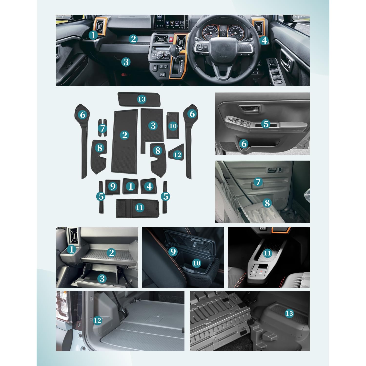 商品情報商品の説明※製品はHUAHAO製、車用カスタムの車用ノンスリップマットです。ご購入前、車種をご確認ください。 車種専用:ダイハツ タフト 3代目 LA900系 LA900S/LA910S型 2020.6~ 耐久性が向上:高品質のシリコン素材を使用し、柔らかくて弾力があり、長期間の使用に耐えます。 ピッタリ:オリジナルデータに基づいて設計され、各部分のサイズがピッタリに合います。シンプルで洗練されたデザインにより、見た目も魅力的に仕上がります。物を上に置いても目立たないため、機能性と美観が保たれます。 滑り止め・傷防止:シリコン素材固有の滑り止め効果に加えて、特別に設計された滑り止め加工が施され、滑り防止性能が大幅に向上しています。これにより、運転中に物体が動いて発生する騒音や傷を防ぎ、車の内装をしっかり保護します。 お手入れが簡単:車のドアボックスやその他の収納ボックスに残る水跡やホコリにお困りですか?ノンスリップマットでこれらの問題を完璧に解決できます。汚れたノンスリップマットは簡単に取り出し、すぐに洗い流すだけで、お手入れが非常に簡単です。 簡単取り付け:置くだけの簡単な取付、ジャストフィット!!(持ち手付きで、取り出しも簡単です。) ※商品に問題があった場合はお手数おかけ致しますが、まずは当店と連絡してください。 当店はお客様の質問や要求に24時間以内にお応えするよう待機しています。※主な仕様 【車種専用】ダイハツ タフト 3代目 LA900系 LA900S/LA910S型 2020.6~に適用します。注意事項:年式やグレード、オプションによっては適合しない場合がありますので、形状をご確認の上、ご購入ください。br【サイズピッタリ】タフトに設計されており、各部のサイズはピッタリに合わせています。物体の移動によるキズを効果的に減少させ、お車をしっかりと保護します。シンプルで洗練されたデザインにより、見た目も素敵に仕上がります。br【滑り止め】シリコン素材の固有の滑り止め効果に加え、特別な滑り止め設計が施されており、その結果、滑り防止効果が大幅に向上します。これにより、運転中の物体の動きやそれによる騒音の発生が著しく減少します。br【お手入れが簡単】車のドアボックスやその他の収納ボックスに残る水跡やホコリにお困りですか?ノンスリップマットでこれらの問題を完璧に解決できます。汚れたノンスリップマットは簡単に取り出し、すぐに洗い流すだけで、お手入れが非常に簡単です。br【アフターサービス】弊社は出荷前に真剣にご検査致しますので、ご安心してお買い求めください。説明書は付属しておりませんので、ご了承ください。各部品の位置は、ウェブページに掲載されている第3の写真をご参照ください。また、何かご不明な点がございましたら、お気軽にお問い合わせください。24時間以内ご対応いたします。(アカウントサービス内の「アカウントサービス」→「注文履歴」→「販売元」→「質問する」