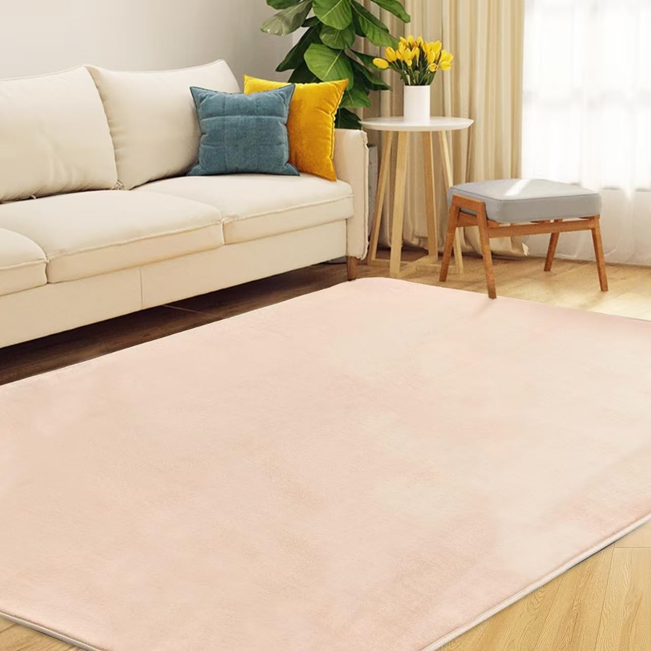 【送料無料】Keusnix カーペット ラグ ラグマット滑り止め付 洗える 135x185cm 約1.5畳 絨毯 防ダニ 抗菌 防臭 オールシーズン快適に使用 床暖房 ホットカーペット対応 ふわふわ肌触り フランネルラグ 無地 アイボリー