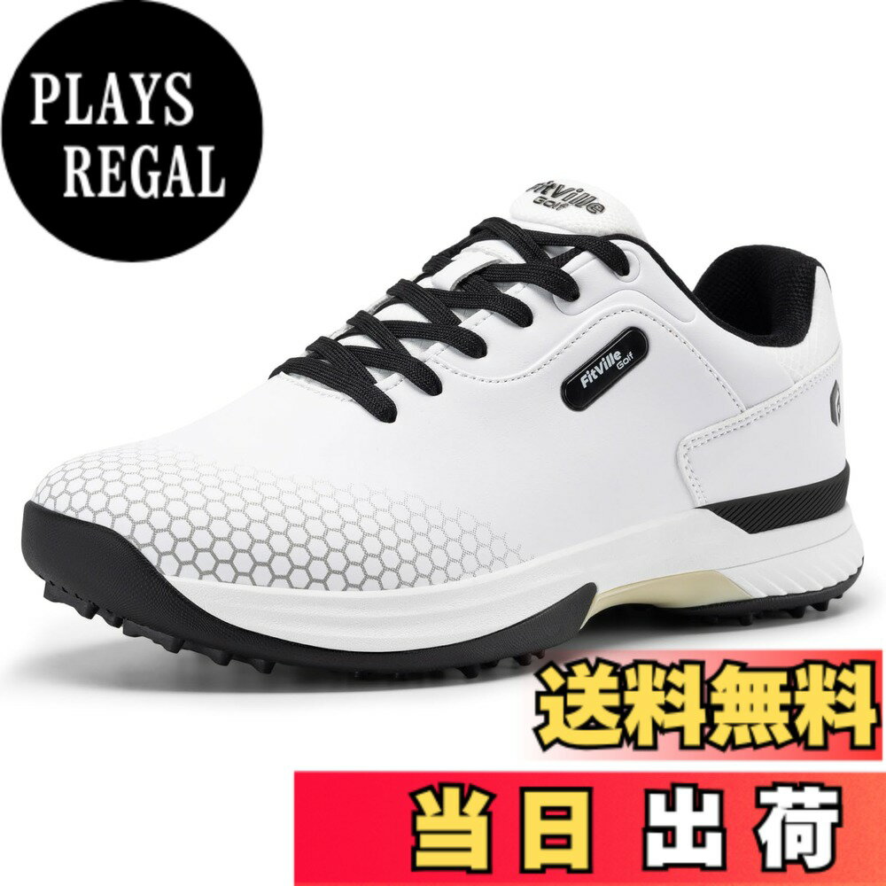 【送料無料】[FitVille] ゴルフシューズ メンズ 幅広 スパイク プロゴルフ 靴 男性用 ゴルフトレーニング スニーカー ビジネス運動 軽量 撥水 色:ホワイト、サイズ:28.5 cm 4E