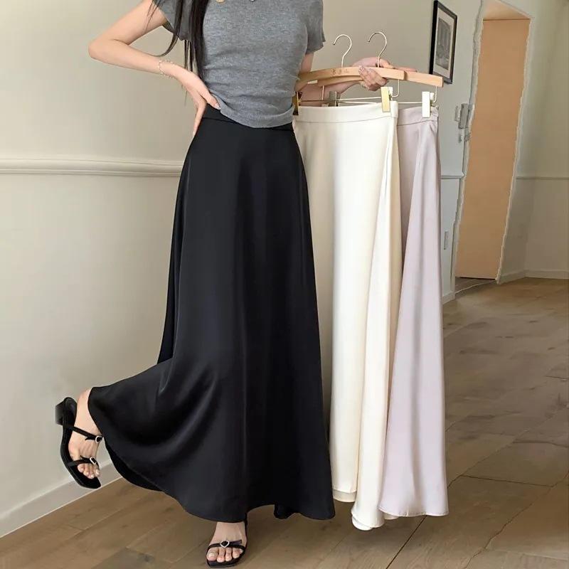 レディース スカート マーメイド サテン アセテート ハイウエスト 落ち感 Aライン フレア ロング丈 マキシ丈 細見え 体型カバー 上品 高見え きれいめ 大人 カジュアル 春 夏