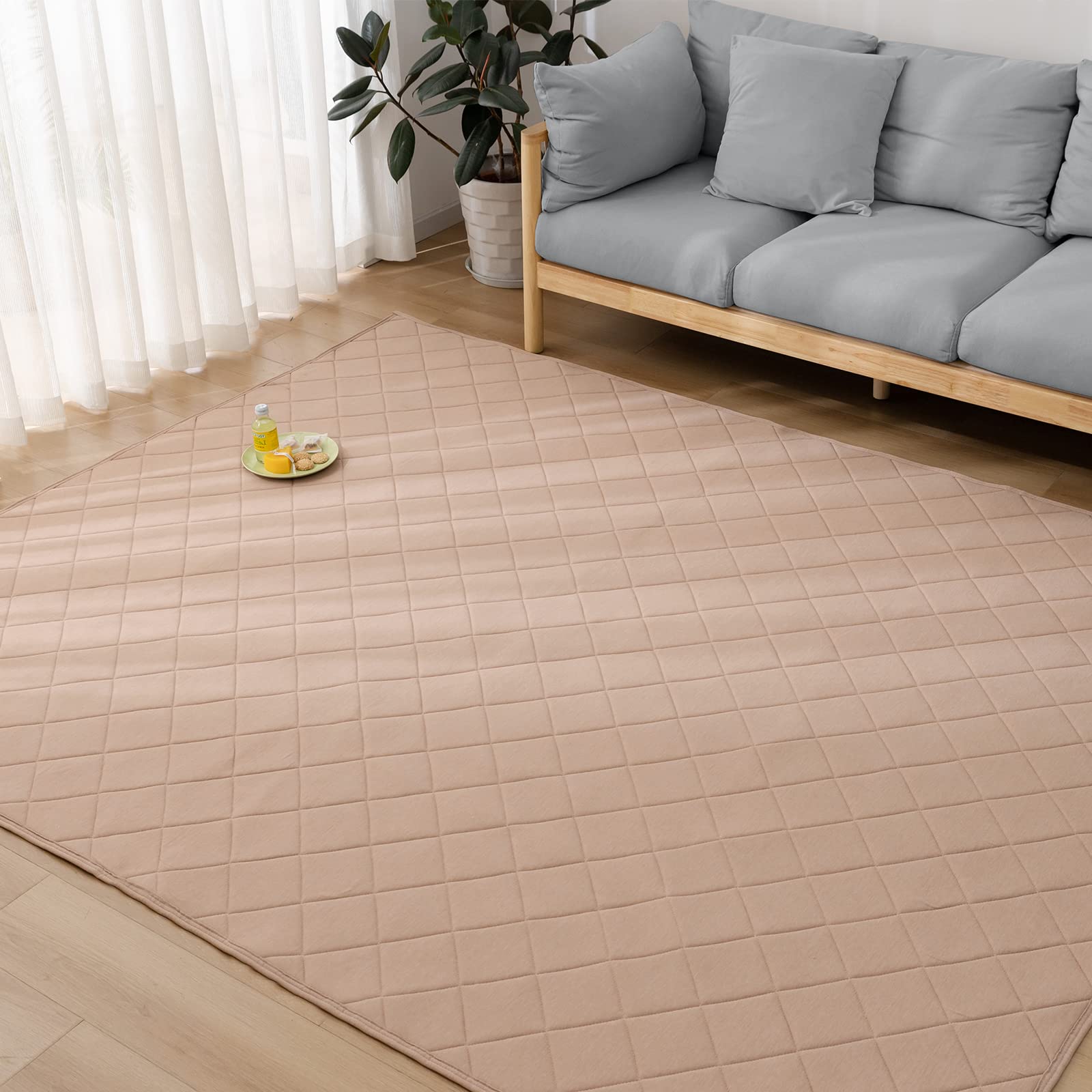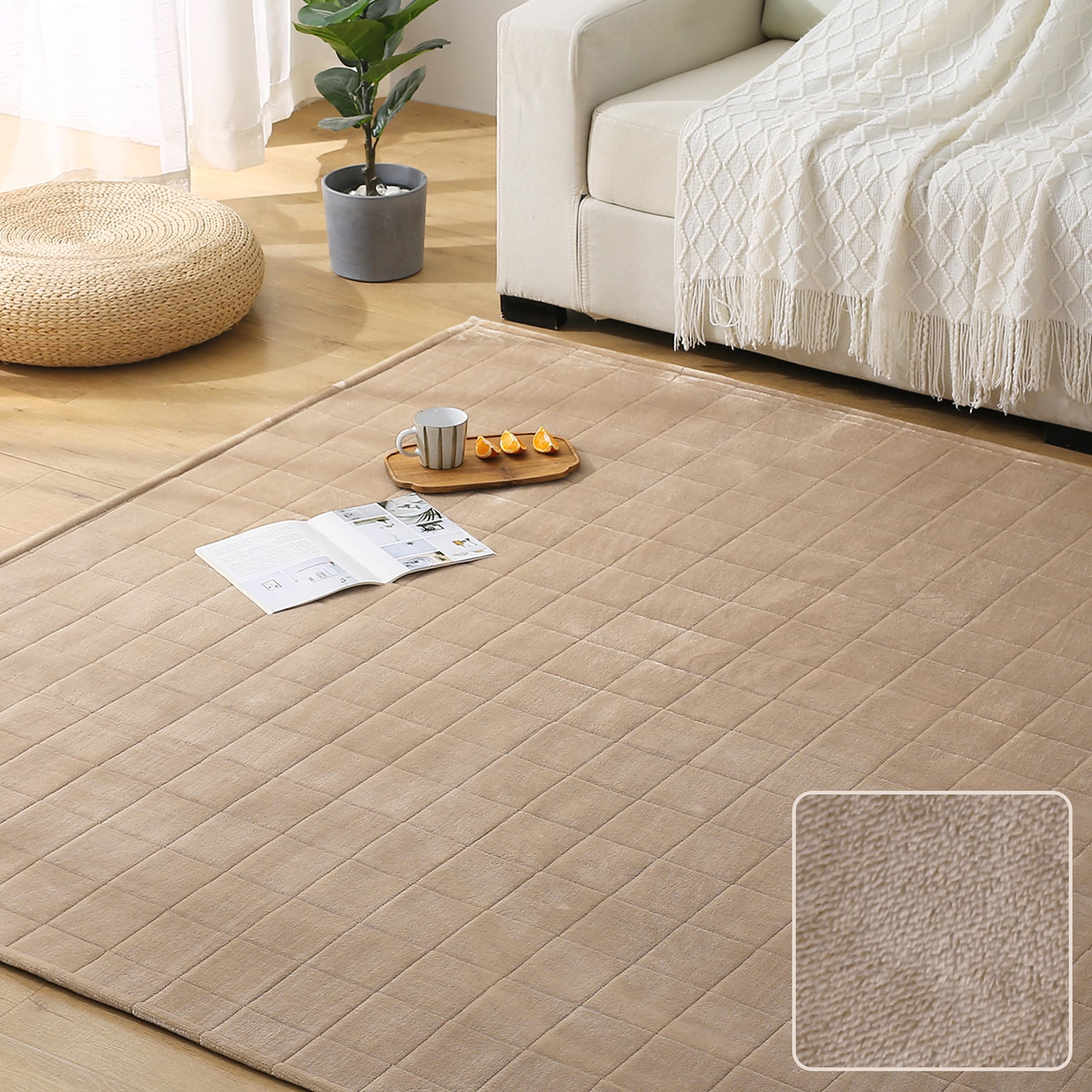 【送料無料】Keusnix キルトラグ 洗える 色:ベージュ、サイズ:185 x 185 cm (正方形)