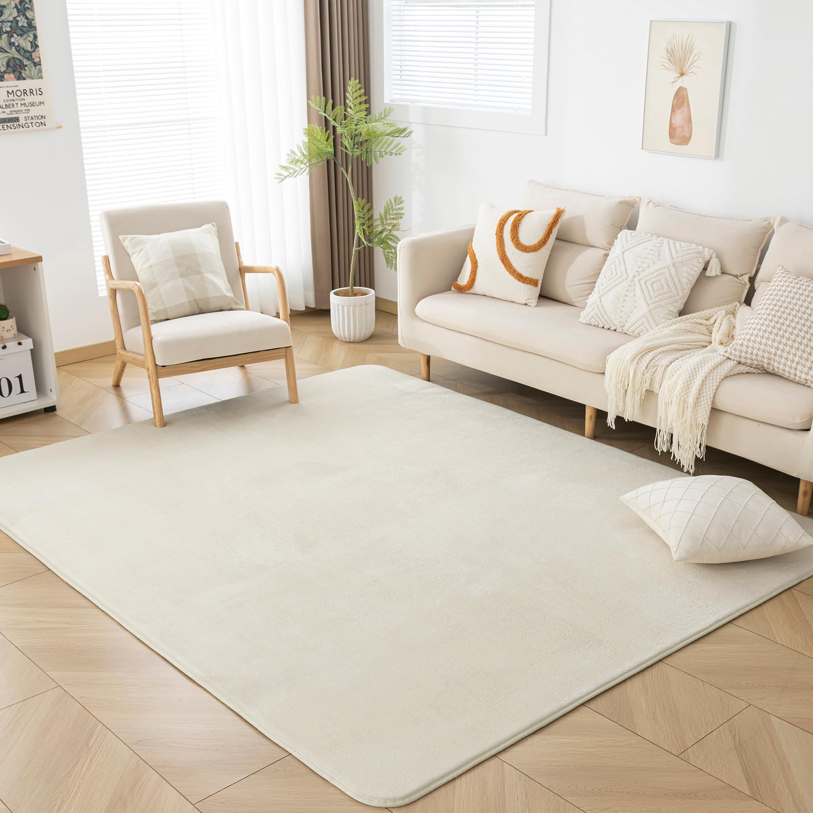 【送料無料】Keusnix 低反発 ラグマット 厚手 15mm ラグ カーペット ホットカーペット対応 色:アイボリー、サイズ:130 x 185 cm (長方形)