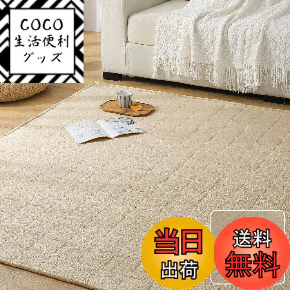 【送料無料】Keusnix キルトラグ 洗える 色:ベージュ、サイズ:185 x 185 cm (正方形)