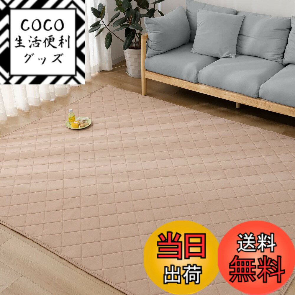 【送料無料】Keusnix キルトラグ 洗える 色:ベージュ、サイズ:185 x 235 cm (長方形)