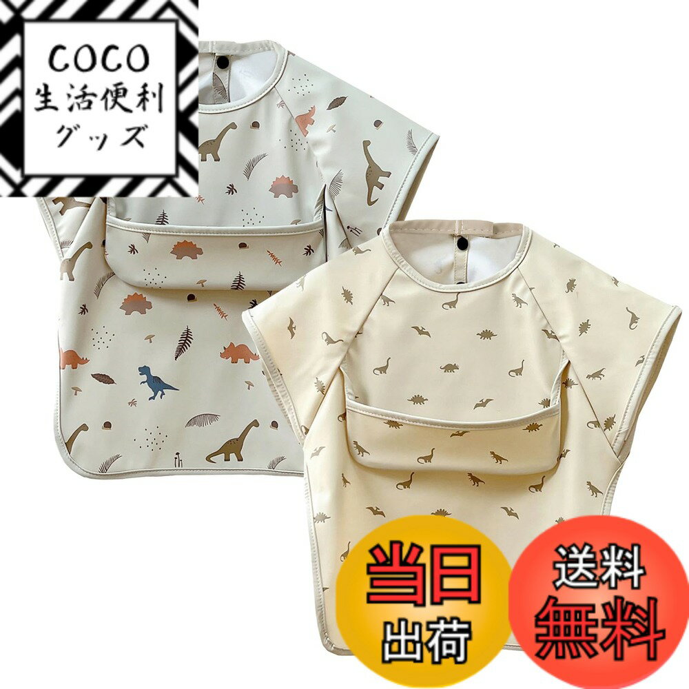 【送料無料】[GoUseGo] お食事エプロン ベビー 半袖 離乳食エプロン 2枚セット 防水 食事用エプロン 防水 赤ちゃん 食事スタイ 女の子 男の子 幼児用 エプロン 1歳 2歳 3歳 4歳 5歳 6歳 スモック 子供 キッズ 保育園 幼稚園用 色:恐竜x恐竜、サイズ:L