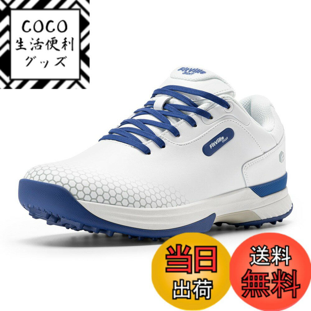 【送料無料】[FitVille] 幅広 ゴルフシューズ メンズ 2E 4E ゴルフ用 スニーカー スパイク 軽量 色:ブルー、サイズ:27.5 cm 2E