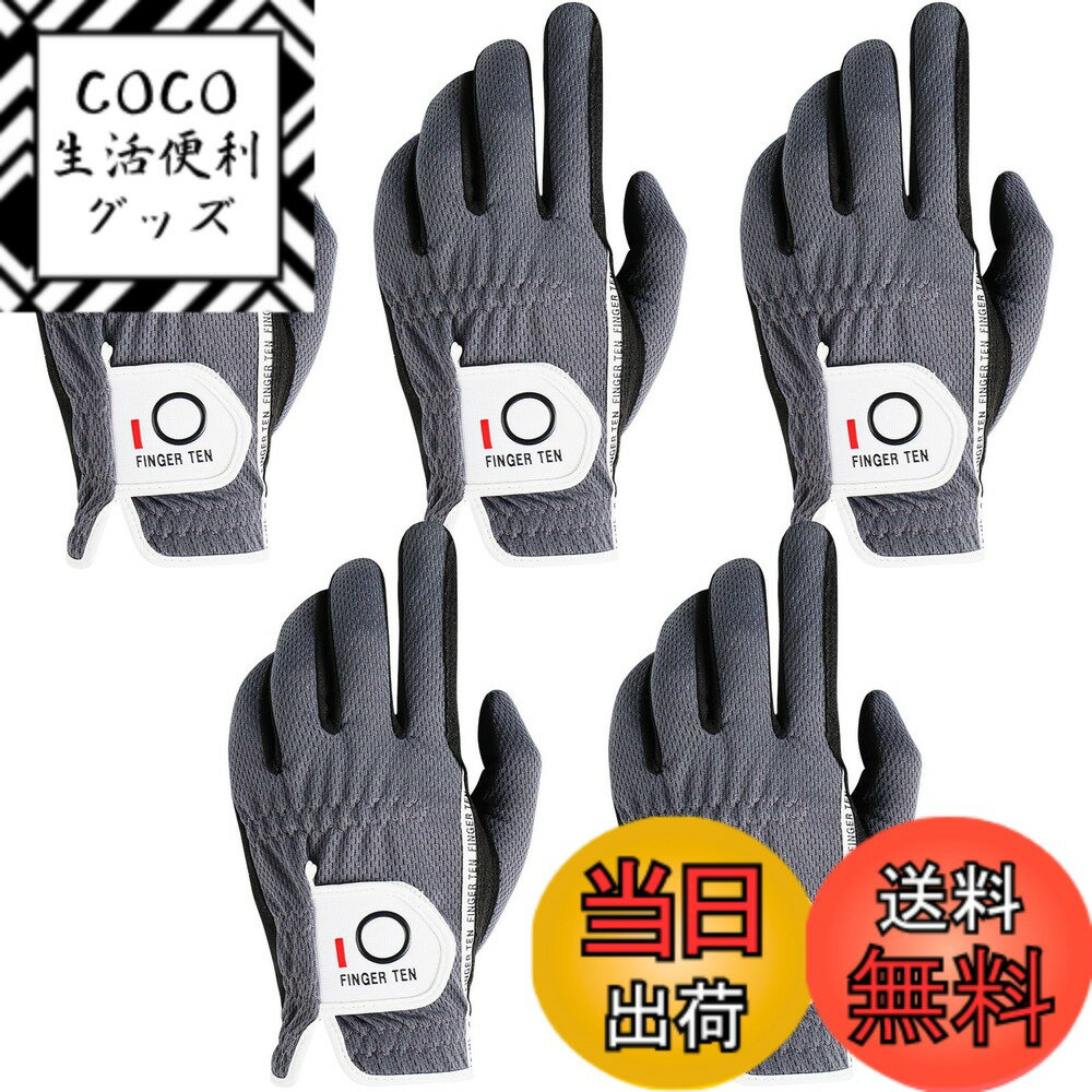 【送料無料】ゴルフグローブ メンズ 5枚セット スウェード調合成皮革 繊維布 メッシュ素材 ソフト 通気 速乾 耐摩擦性 丸洗い可能 マジックテープ 多機能 全天候型 破れにくい ゴルフ用手袋 DLX-006 色:グレー(左手用)、サイズ:26