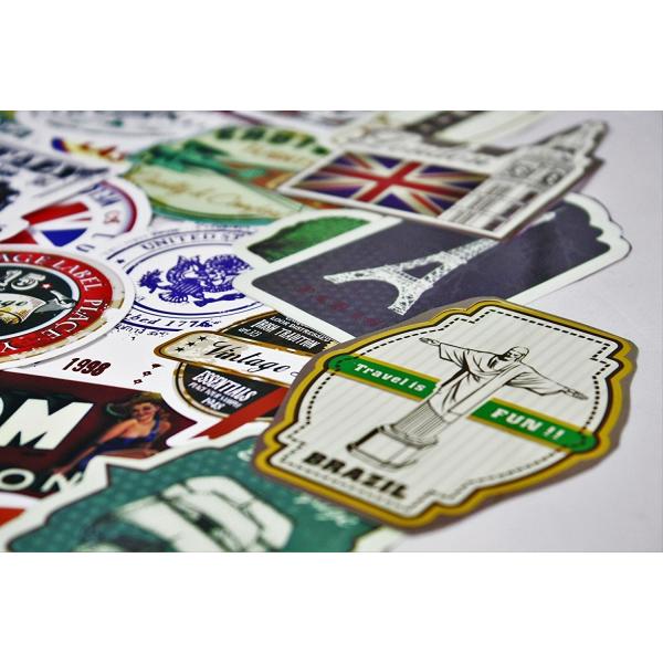 スーツケースやiphoneケースなどに貼ることでおしゃれ度が一気に上がるアイテムです。 各国の有名な建物や銅像、飛行機などをヴィンテージ風にしているのでスーツケースだけでなくほかのアイテムにももってこいです。場所をとらない様にシートタイプなので便利です。