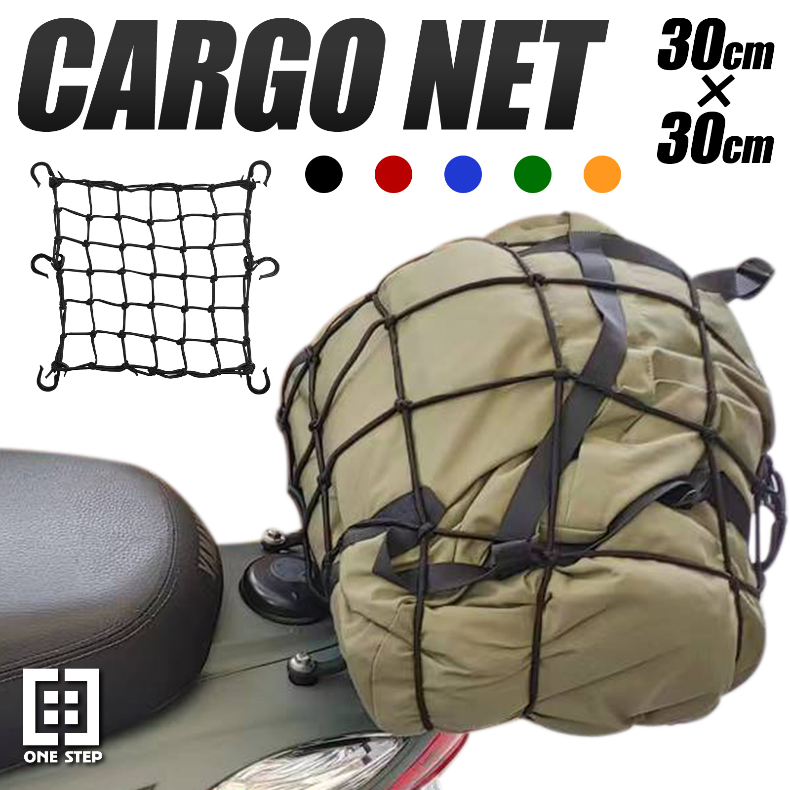 バイクネット ツーリングネット キャリア用ネット カゴ 自転車 バイク ヘルメット 盗難防止 30cm ONE STEP