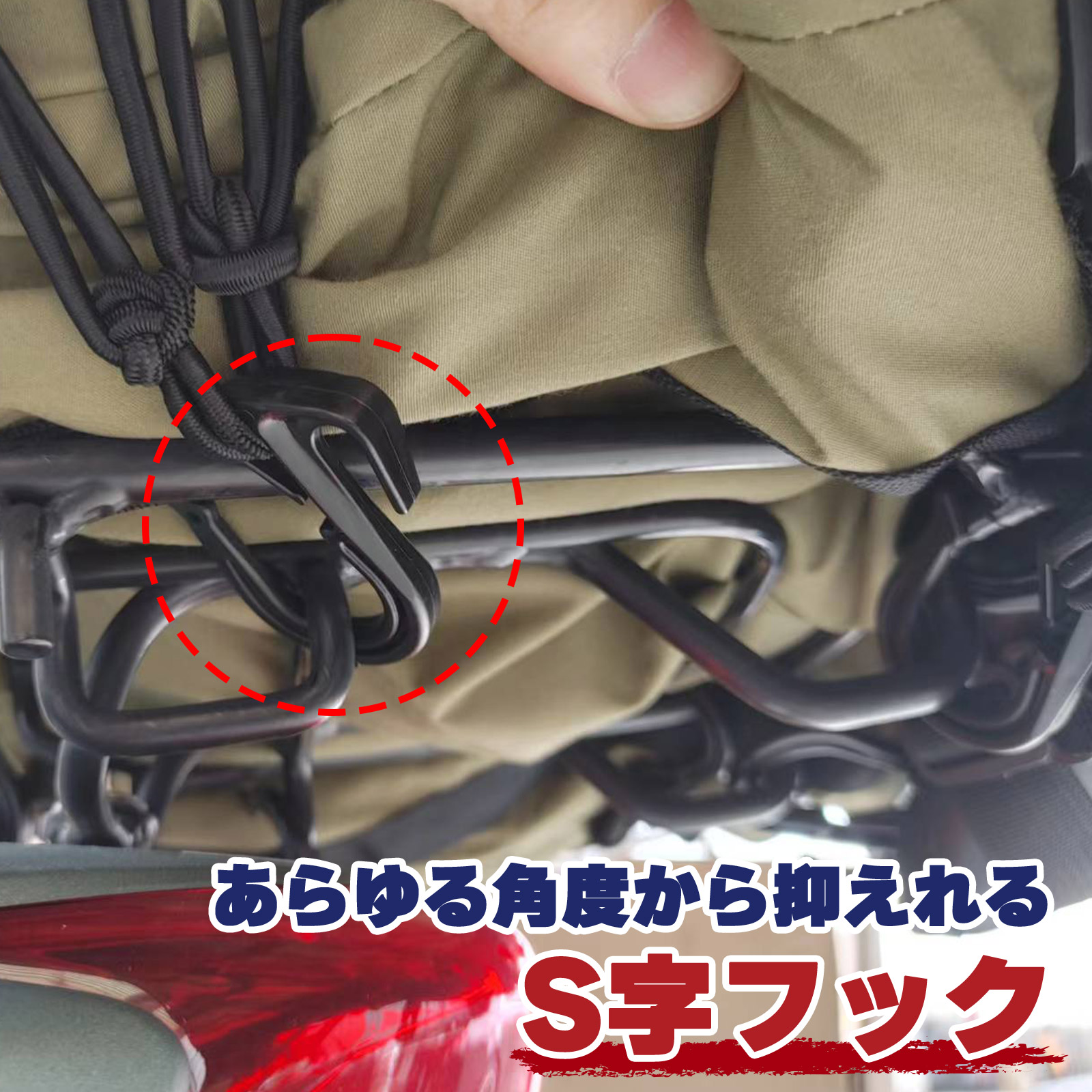 30cm×30cm ロックストラップ バイク用ネット バイク荷物ネット フック バイク用品 盗難防止 ひったくり 防犯