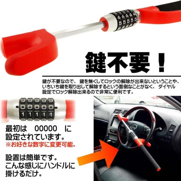 車両盗難防止ダイヤルロック式ハンドルロック赤色 ハンドルステアリングロック 取付簡単ハンドルロック 防犯ハンドルロック as1291