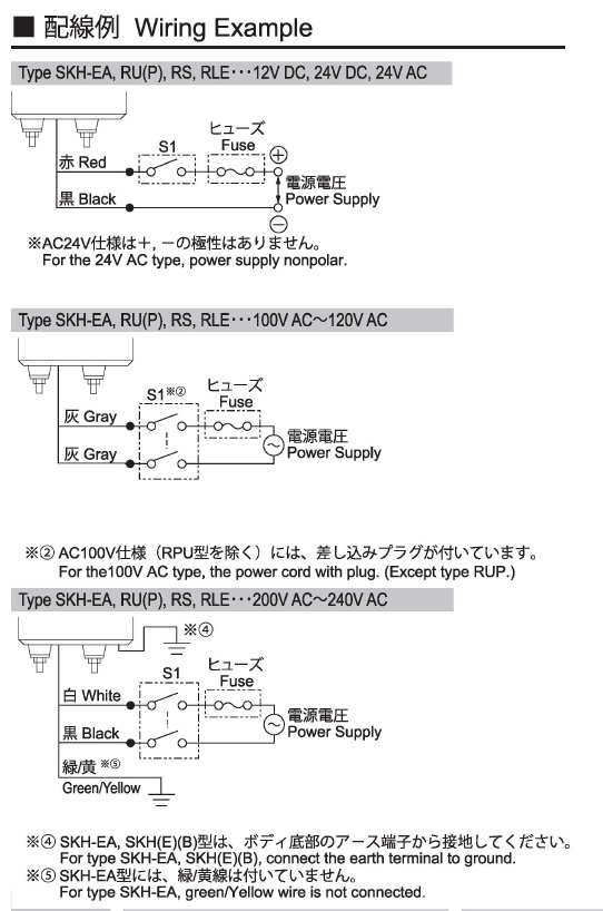 | SKH-200EA-R | AC200V | 12V5W G18/BA15S | 赤 | 6.5W | ||