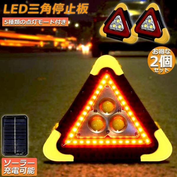 三角停止板 2個セット 作業灯 投光器 三角表示反射板 三角停止表示板 LED デルタストップ 車警告灯 道路用 事故 応急 停電 防災対策 登