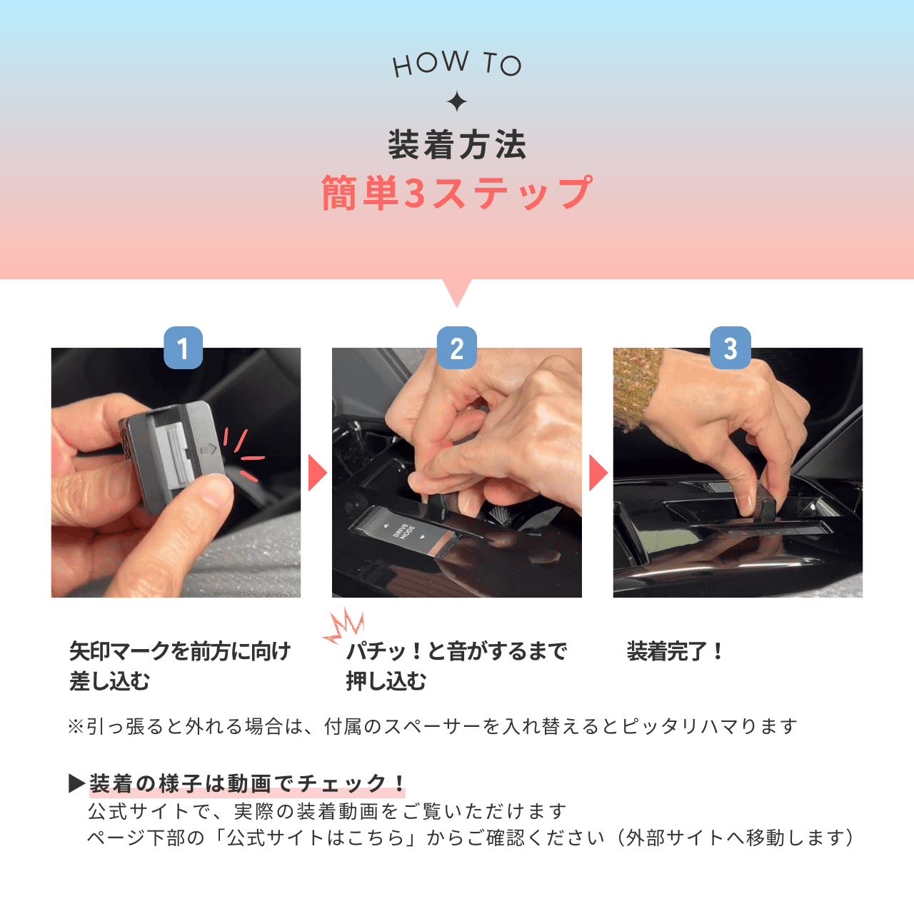装着方法動画は、公式サイトでご確認いただけます。