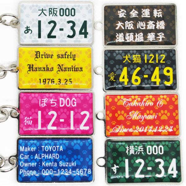 ナンバープレート キーホルダー 両面 肉球 犬 猫 ID メッセージ 車名 連絡先 名入れ 文字入れ 名前入り ナンバーキーホルダー メタル フレーム 記念日 誕生日