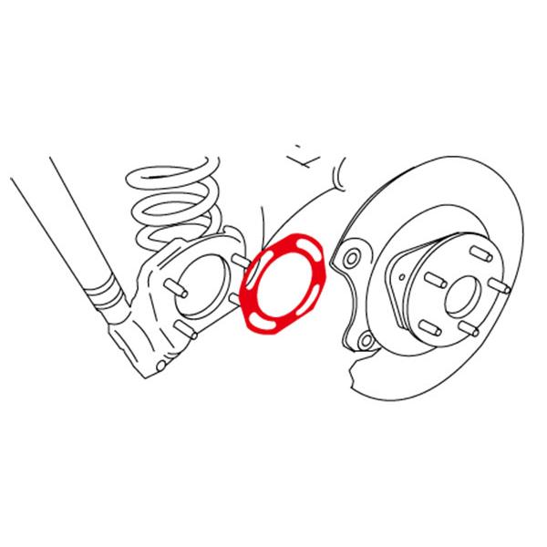 トヨタ ミニバン、FF車のリヤトーションビームアクスルのリヤキャンバーとリヤトーの調整をします。タイヤ偏摩耗、片減り防止のためアライメント調整にお勧めです。 SH28702などを使用して劣化したアクスルキャリアブッシュを交換してからアライメントを行うことを推奨しています。 ハブベアリングを外して、バックプレートとリアアクスルビームの間に適切な変化量のシムを挟むだけで簡単に調整できます。片側最大2枚まで組み合わせてトーとキャンバーを調整します。 |