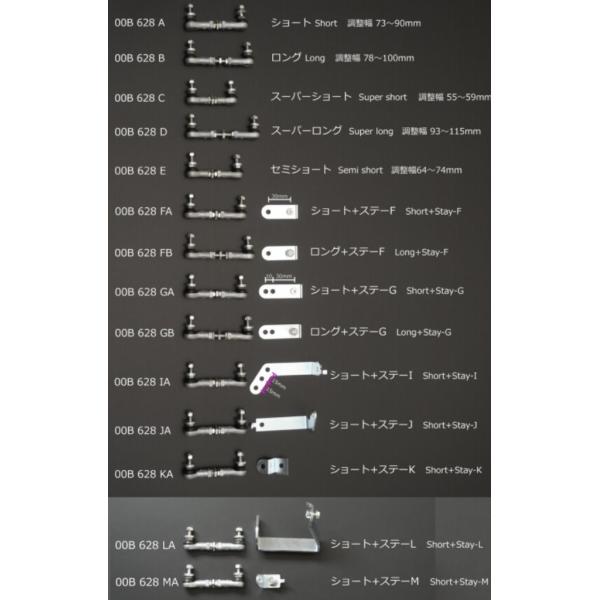 | 仕様 | 純正ロッド長46mm 調整範囲(ステー使用時換算値) 48〜65mm 調整範囲(ステー無し本体のみ) 73〜90mm ※ステー穴オフセット量約25mm |