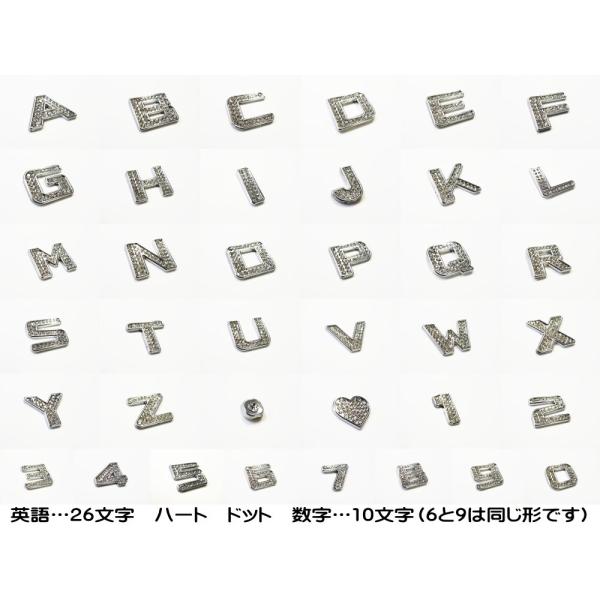 メッキエンブレム スワロフスキー調 ラインストーン付き クロームメッキ オリジナルネーム作成などに 汎用 数字 アルファベット ハートマーク ドット