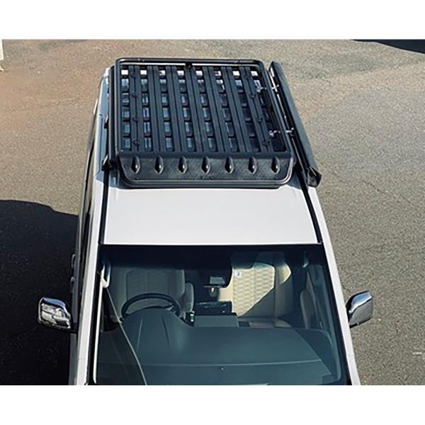 ■寸法:全長2080×全幅1260(フットを除く)■荷台内寸:縦1770×横1100(アッパーレール内フェアリング部分を除く)■製品重量:33.1kg■最大積載重量:50kg■カチオン+パウダーコート(粉体塗装)仕上げ■材質・本体:アルミニューム押し出し材・アッパーレール:アルミパイプ+アルミ材・コーナーパーツ:PA6+GF(強化プラスチック)・サポートバー(Cチャン:アルミ材 補強材およびフット部分/鉄(パウダーコート)■付属品:トーイングアイプレート(鉄)×8個