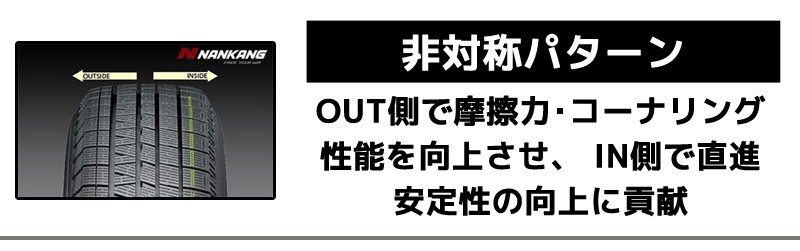 ■左右非対称パターンです。このタイヤの外側にはOUTSIDE、内側にはINSIDEと刻印があります。OUTSIDEが車両に対して外側になるように装着してください。右用左用の設定はありません。