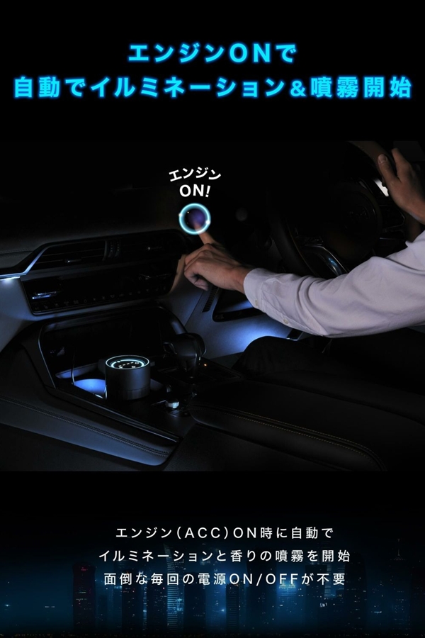 好きな時だけ使えて香りが長持ちするだけでなく、光で車内をドレスアップすることができます。