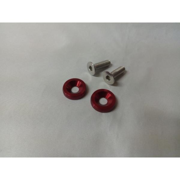 六角ボルトのM6x15ボルトにレッド、またはブルーの大きめのワッシャが、フロントビューにワンポイントのアクセントを加えるアイテムです。
