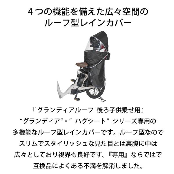 自転車 レインカバー 後ろ乗せ用 ルーフ型 OGK 屋根型 後ろ子供乗せ用 リア グランディア ハグシート 専用 黒 梅雨 防風 寒さ対策 通気性 雨避け 風避け 雨具