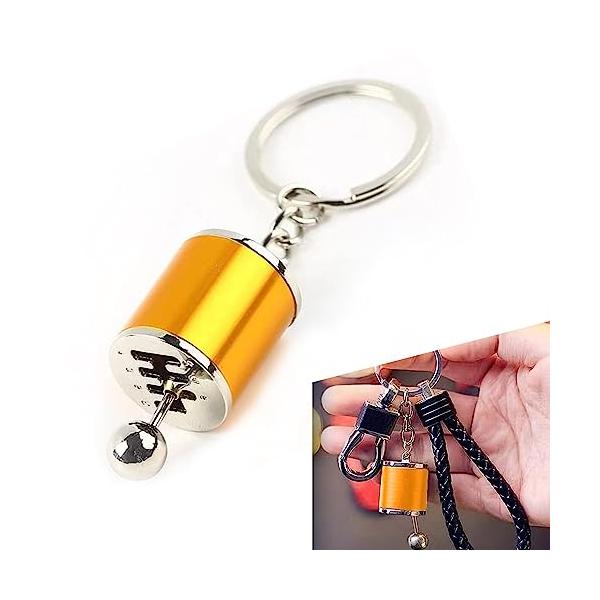 商品名: GKmow Pack-1 Car Shifter Keyring, Universal Polished Metal Key Chain Model, 6 Speed Gear Mini Key Clip (Gold)