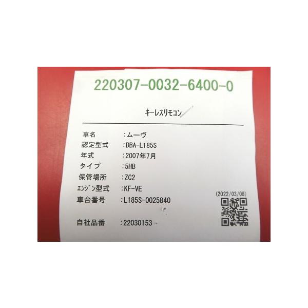 ★使用していた車両情報は2枚目の在庫ラベルを参照ください。