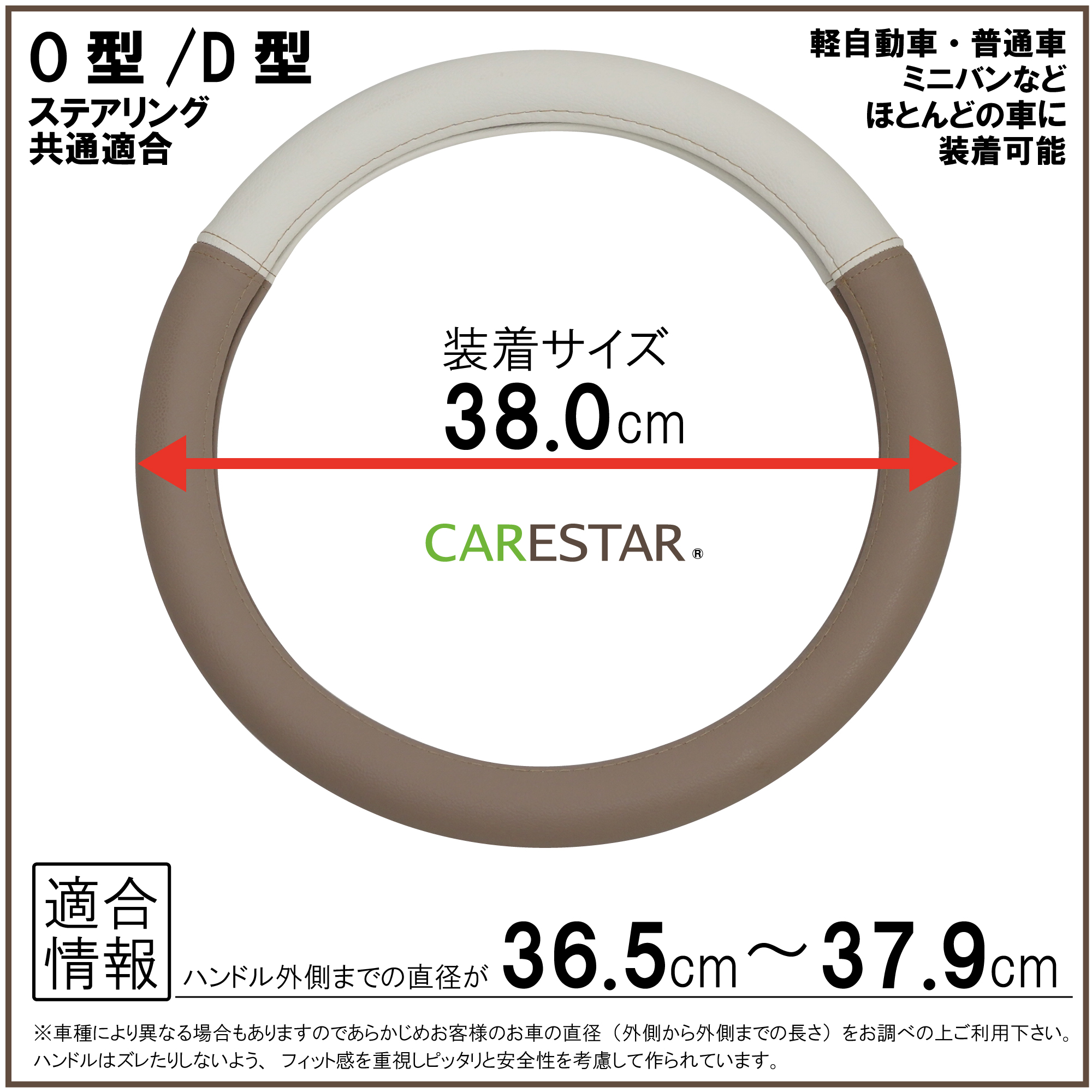【適合車種】ハンドル外側までの直径36.5センチ〜37.9センチの車に適合