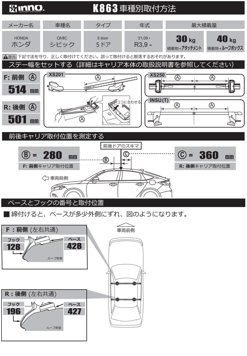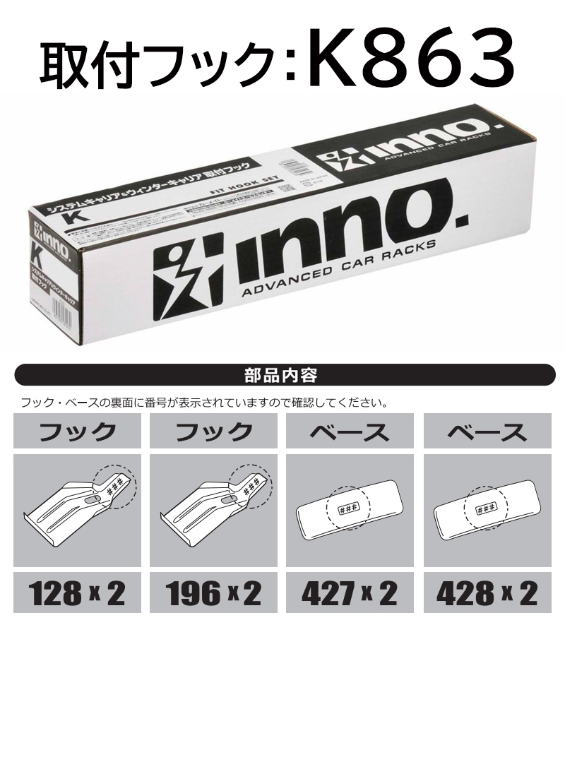 K863 inno 取付フック ホンダ シビック 5ドア R3.9〜 2021.09〜 FL1 FL4 FL5 イノー システムキャリア ベースキャリア キャリア carmate