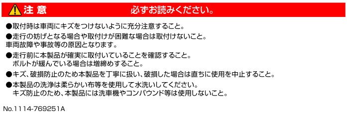 ●本製品はナンパープレートに関する法律・条例の取締対象外です(当社調べ/平成23年1月現在)。 ただし、一部の地域では、車検・点検の際に取外しが必要な場合があります。また、本製品の取付方法、 改造、破損、汚れ等により取締の対象となる場合があります。