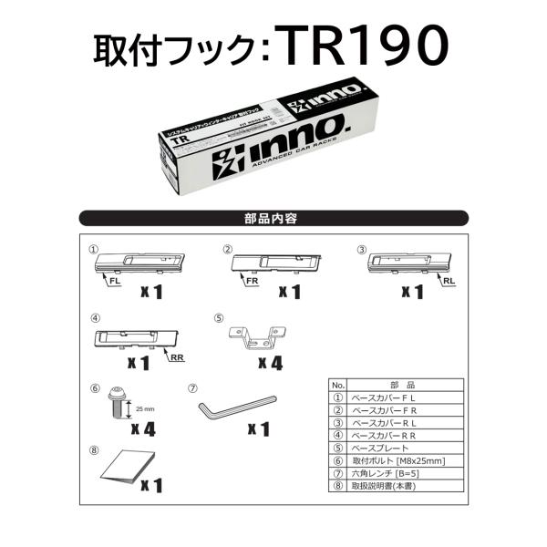 TR190 inno 取付フック トヨタ カローラクロス 型式 ZSG10/ZVG1#系 年式 R3.9-(2021.09-) フラッシュレール付 carmate カーメイト イノー システムキャリア ウインターキャリア 取付フック