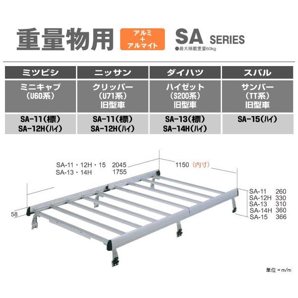 横山製作所 ROCKY ロッキー ルーフキャリア 重量物 アルミ+アルマイト 車種専用タイプ * スバル サンバー/トライ ハイルーフ TV1・2系 平成11年2月〜24年2月 【SA-15】