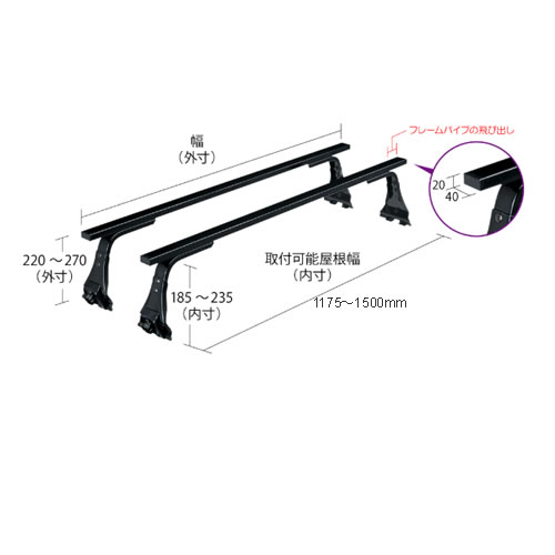 取付可能屋根幅(内寸)1175〜1500mm