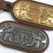 プレートにシーサ(伏せ横向き)がデザインされたキーホルダーです。