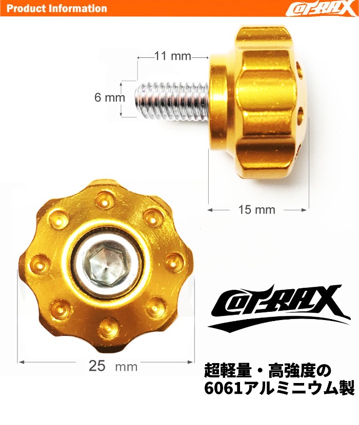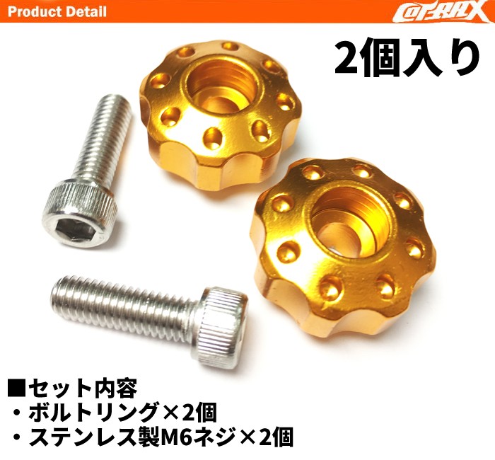 【YASMO】ナンバーボルト ナンバープレート用 M6ステンボルト 自動車 アルマイト ドレスアップ カスタム 自動車 バイク 汎用 2個セット ギア(ゴールド)