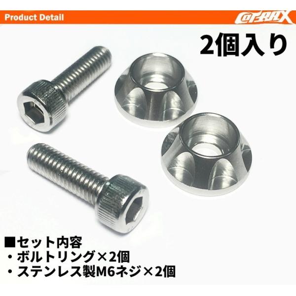 | 商品内容 | ・キャップボルト×2本 ・ナンバーボルトリング×2個 (取り付け用の六角レンチ は付属しません) |
