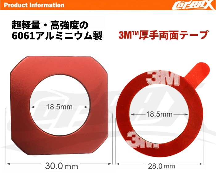 【COTRAX】封印カバーリング 3M両面テープ固定 アルミ製 自動車 封印リング ドレスアップ カスタム パーツ 取付簡単 軽量 アルマイト スクエア(レッド)