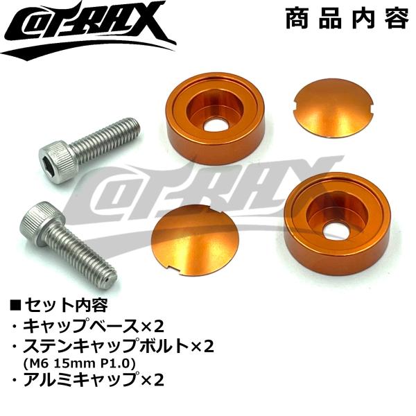 【COTRAX】ナンバーボルトキャップ2個セット キャップカラー選択 盗難防止 ドレスアップ アルマイト 車 バイク ナンバープレート ナンバーボルト(オレンジ)