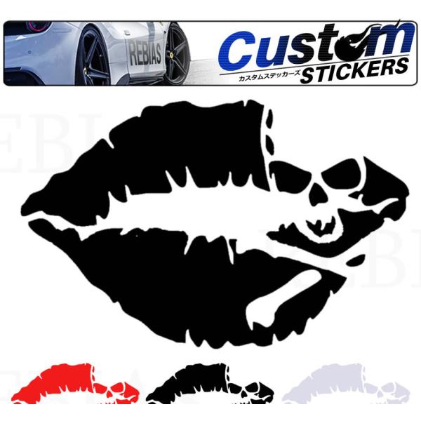 キスマーク ステッカー リップスカル 2枚セット 唇 ドクロ 骸骨 お洒落 シール 車 バイク 家電 カスタム ドレスアップ