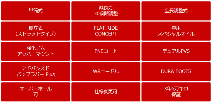 ストロークの早い段階からバンプタッチを狙い徐々に荷重を立ち上げる特性を継承。