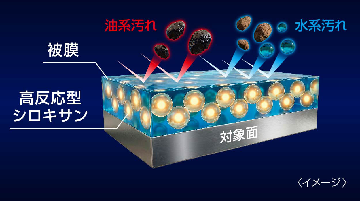 雨や泥を弾き飛ばす強・撥水性 × 油汚れも弾く撥油性